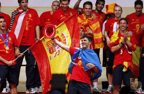 El delantero David Villa durante la celebración del triunfo de la Selección Española en el Mundial de Sudáfrica 2010.
