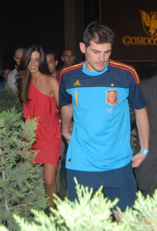 Íker Casillas y Sara Carbonero cogidos de la mano tras la celebración de España como Campeona del Mundo.
