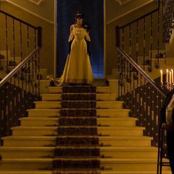 Alicia Alarcón bajando las escaleras del Gran Hotel durante el baile de máscaras