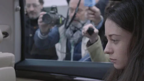 Elena Rivera frente a los medios en el primer capítulo de 'La verdad'