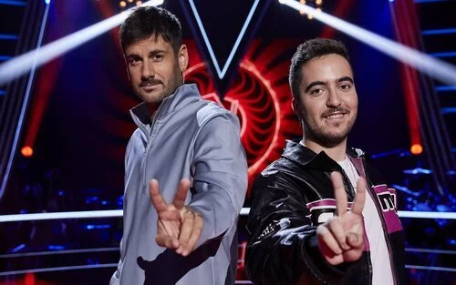 Beret y Melendi hacen el gesto de 'La Voz' en la sexta edición de 'La Voz Kids'