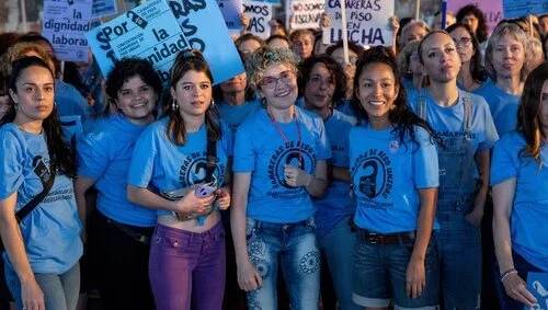 El personaje de María Pujalte y sus compañeras de 'Las invisibles' participan en una reivindicación en esta escena.