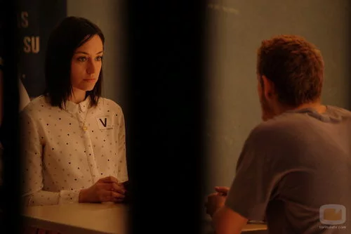 Cristina (Andrea Trepat) visita en la cárcel a Fernando Rueda (Patrick Criado) en la segunda temporada de 'Mar de plástico'.