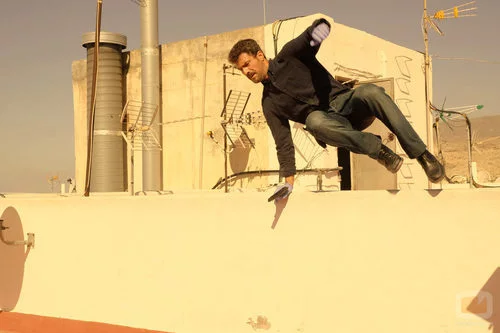 Héctor Tarancón (Rodolfo Sancho) perseguirá a un sospechoso en la azotea de un edificio en la 2ª temporada de 'Mar de plástico'.