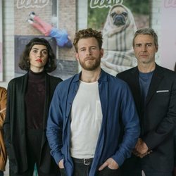 Álvaro Cervantes junto al reparto de "Loco por ella"