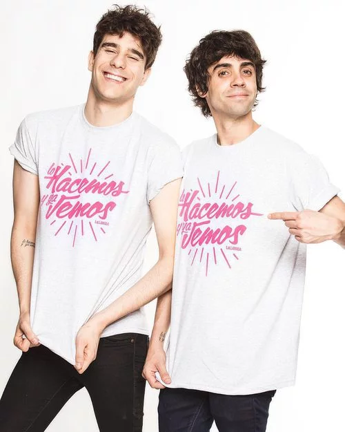 Los Javis con la camiseta promocional del tema "Lo hacemos y ya vemos"