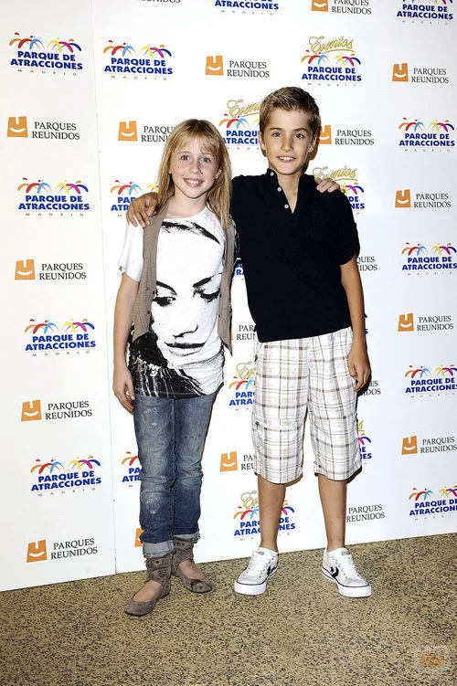 Denisse Peña y Javier Cidoncha, de 'El internado', en la presentación de Star Flyer en el Parque de Atracciones.
