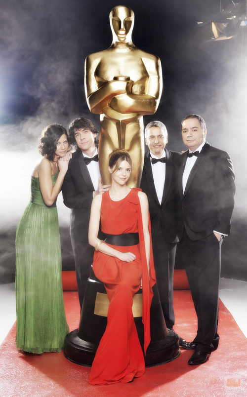 Pepe Colubi, Manuela Velasco, Juan Zavala, Cristina Teva y Antonio Muñoz de Mesa presentan los Oscar 2010 en Canal+.