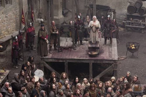 Bartholomew (Doland Sutherland), delante de una muchedumbre que ansía verle morir.