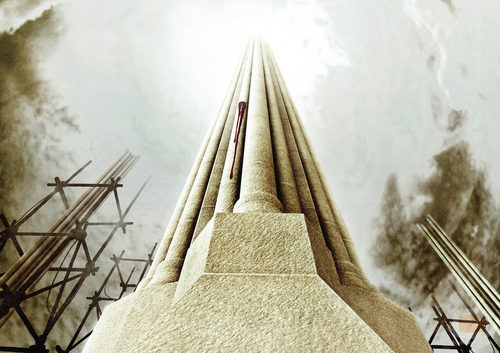 Foto promocional de 'Los Pilares de la Tierra' en la que se observa una columna sangrante.