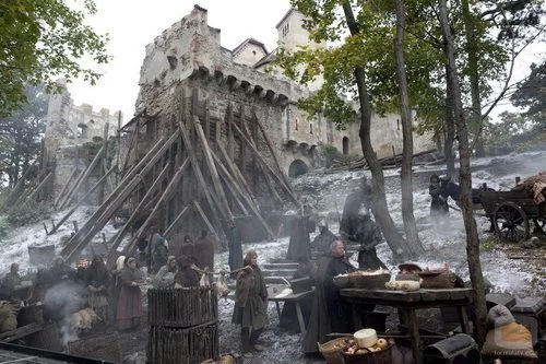 Escena de 'Los Pilares de la Tierra' en que se oberva la constucción del palacio de Waleran Bigod.