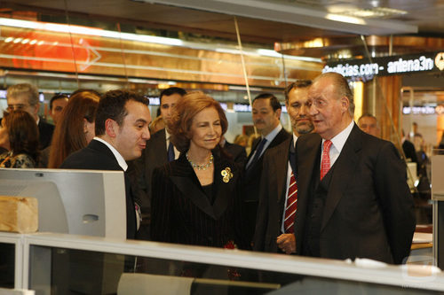 El Rey Juan Carlos I y la Reina Sofía durante su visita a Antena 3 por su 20 aniversario