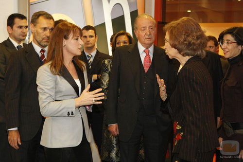 La directora de Informativos de Antena 3 charla con la Reina Sofía durante la visita de los Reyes a la cadena.
