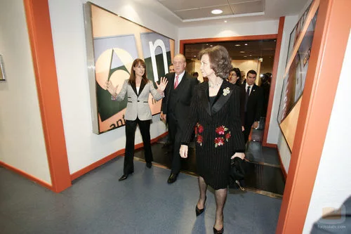 El Rey Juan Carlos I y la Reina Sofía durante su visita a Antena 3 por su 20 aniversario.