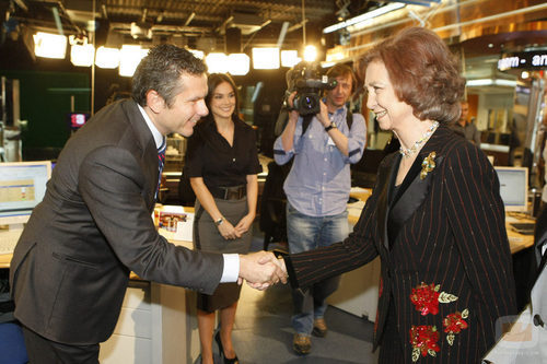 Roberto Arce saluda a la Reina durante la visita de los Reyes a Antena 3.