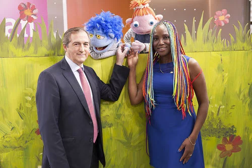 El director de TVE, Eladio Jareño, junto a Lucrecia, la cantante y presentadora de 'Los Lunnis' en la presentación de 'Lunnis de Leyenda'