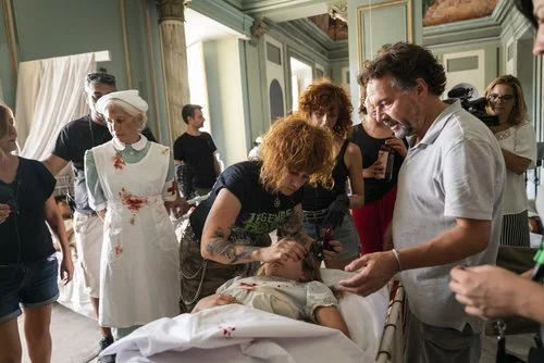 El departamento de maquillaje prepara a Laura Quirós para rodar una escena del capítulo 2x05 de 'Estoy vivo'