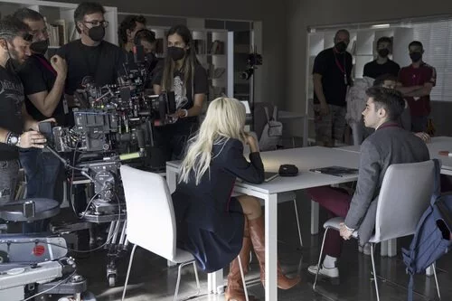Valentina Zenere y Ander Puig en el rodaje de la temporada 6 de 'Élite'