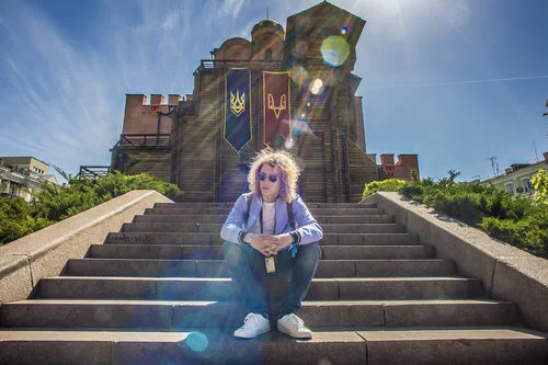 El representante español en el Festival de Eurovision 2017, Manel Navarro, visita la ciudad de Kiev, Ucrania y descansa en unas escaleras.