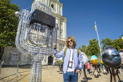 Manel Navarro junto a una escultura de Kiev en Eurovisión 2017