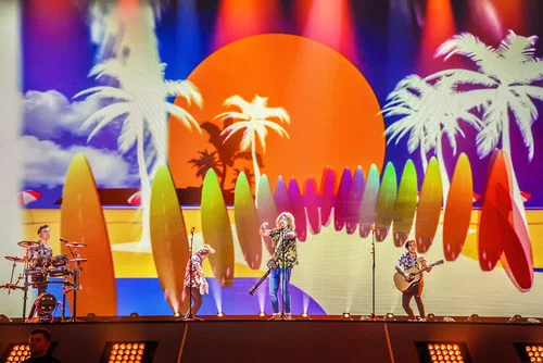 Manel Navarro, con una camisa hawaiana y una puesta en escena llena de luces, palmeras y tablas de surf, ensaya por segunda vez en Kiev.