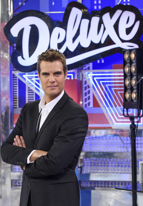 El joven periodista David Aleman posa en el escenario de 'Sábado Deluxe', programa en el que ejerce de presentador.