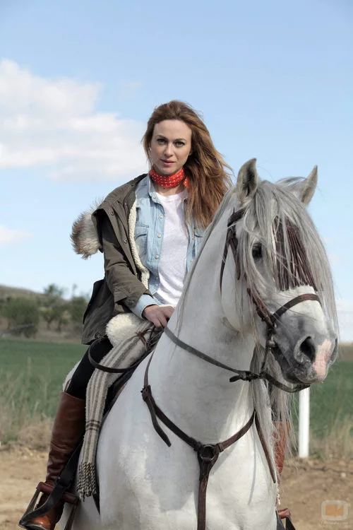 Marta Hazas con Capricho, su caballo en la serie 'Bandolera'