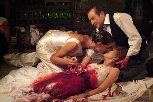 Silvia (Marián Aguilera) besa a Pepa (Laura Sánchez) antes de morir en el capítulo 'Todos los planes de Lucas Fernández' de 'Los hombres de Paco'.