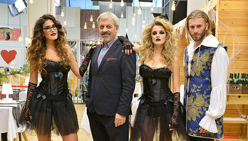 Carlos Sobera junto al equipo del programa 'First Dates' disfrazados con motivo de la celebración de Halloween 2016.