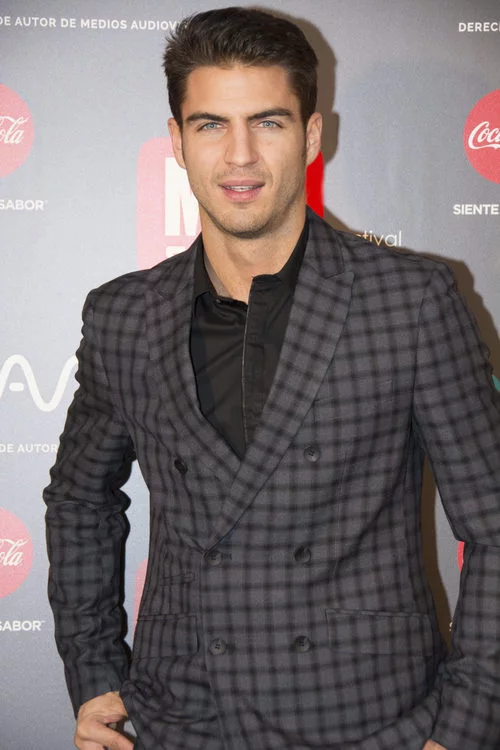 El joven actor Maxi Iglesias, posa con traje gris a cuadros, en el photocall de los Premios MiM 2016, donde acudió como invitado a la gala.