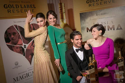 Maxi Iglesias, Úrsula Corberó Angy Fernández y Andrea Duro posan juntos de nuevo en el photocall de Los Goya 2015.