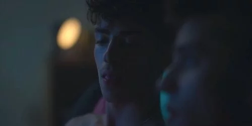 Mientras Iván (André Lamoglia) se masturba, Patrick (Manu Ríos) le mira sacando la lengua en el 5x05 de 'Élite'.