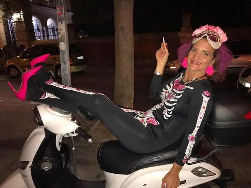 Samantha Vallejo-Nágera ('Masterchef Celebrity') combina negro y rosa en su disfraz para la noche de Halloween 2017.