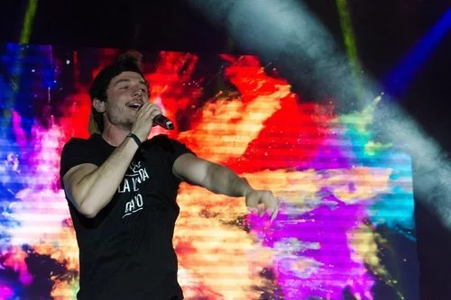 Miki Núñez interpreta "La venda" en la PreParty con una camiseta con el título de la canción y su tradicional gorra como seña de identidad.