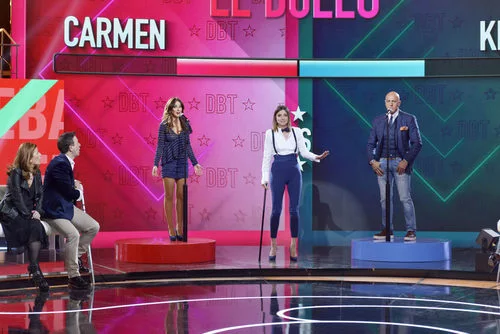 Carmen Alcayde y el colaborador de 'Sálvame' Kiko Matamoros en un duelo moderado por la presentadora Sandra Barneda.