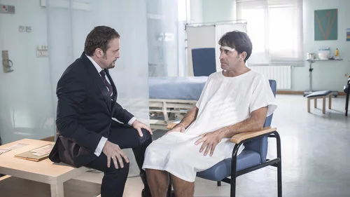 El personaje de Antonio Garrido, Luis, se encuentra en el hospital al fingir un coma y el personaje de Fernando Cayo aparece hablando con él.