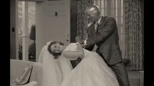 Visión baila junto a Wanda Maximoff en su nueva casa, donde está ambientada la primera serie de Marvel para Disney+.