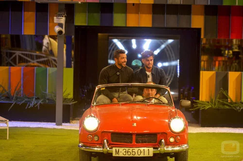 A lomos de un descapotable entraban el francés Alain y el madrileño Rodrigo a su nueva experiencia televisiva dentro de los muros de Guadalix de la Sierra