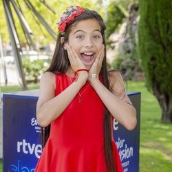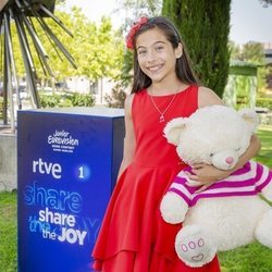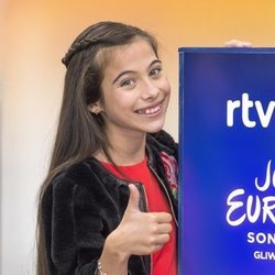 Melani García posa en la rueda de prensa de RTVE tras su paso por el Festival de Eurovisión Junior 2019