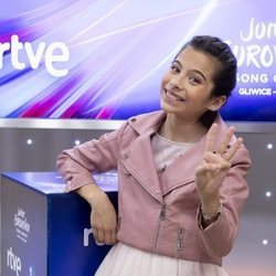 Melani García, sonriente en la rueda de prensa de RTVE después de Eurovisión Junior 2019
