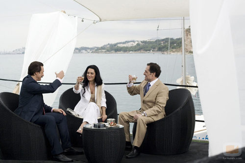 La cantante y el alcalde de de Marbella Julián Muñoz brindan con un abogado en 'Mi Gitana'.