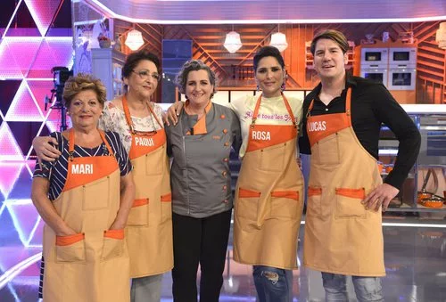 Los cantantes Rosa y Lucas, sus madres y Pepa Muñoz en 'Mi madre cocina mejor que la tuya'