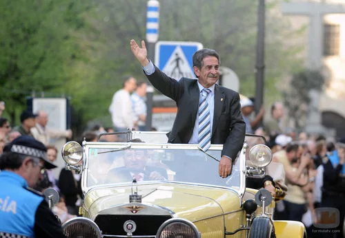 El presidente de Cantabria y colaborador habitual de 'La noria', saludando al público a su llegada a los Micrófonos de Oro 2011.