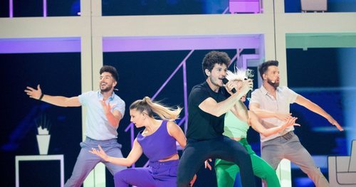 Miki Núñez ultima los detalles de su canción "La Venda" junto a los bailarines en el segundo ensayo del Festival de Eurovisión 2019.