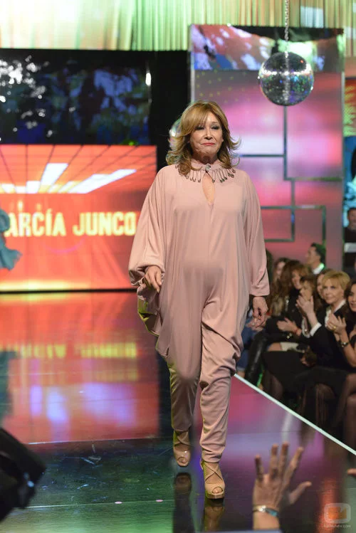 La colaboradora de 'Sálvame', Mila Ximénez, en la pasarela de la 'Sálvame Fashion Week' debutando como modelo.