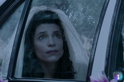 La hija de los Alcántara en 'Cuéntame', Inés ( Irene Visedo) sufrió una fuerte lluvia de camino al altar donde le esperaba Jose Ignacio 'Pachín ( Jordi Rebellón)