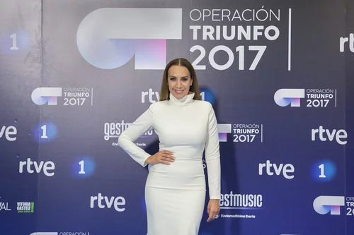La cantante catalana posa ante los medios de comunicación en la rueda de prensa de 'Operación triunfo' en el FesTVal de Vitoria.