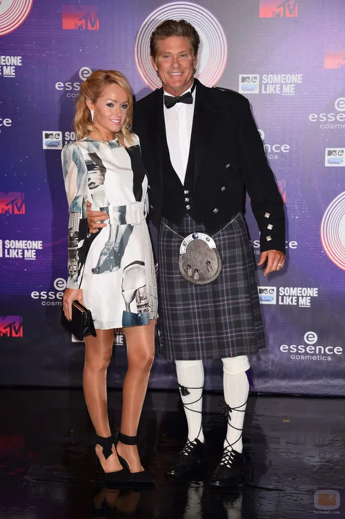 David Hasselhoff y su novia Hayley Roberts en la alfombra roja de los MTV EMA 2014