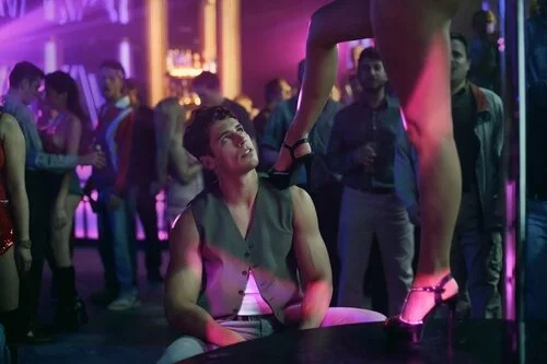 Martiño Rivas como Nacho Vidal en un club de striptease en 'Nacho'