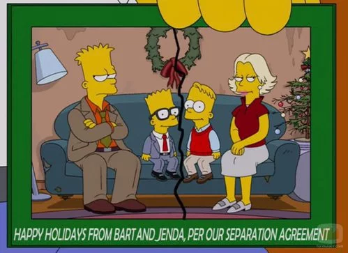 La familia de Bart Simpson dentro de 30 años. Bart y Jenda tienen 40 años y con dos niños están en pleno proceso de divorcio.
